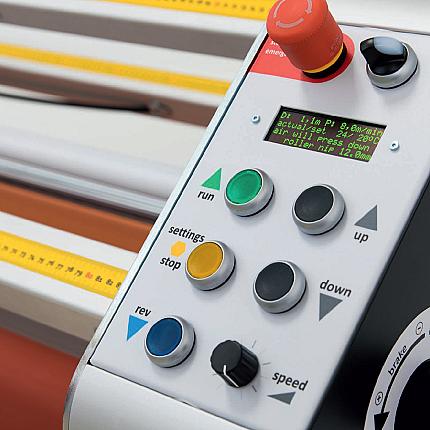 A laminadora HotLam 1650 TH é perfeita para montagem e laminação de até 1650 mm de largura. Esta máquina inclui um rolo superior aquecido, totalmente ajustável até 160 ° C, para laminação aprimorada. Também adequado para hot melt ou filmes de laminação termicamente ativados. Um dos eixos inferiores possui uma unidade combinada (desenrolamento ou enrolamento). As duas estações traseiras têm um design basculante que facilita o carregamento. Além disso, a unidade de combinação inferior é um balanço para fora. Esses recursos, como uma mesa de alimentação com uma calha ajustável embutida, facilitam o manuseio de mídia de grande porte. A mesa oscila para cima, permitindo um acesso fácil e completo aos rolos ao colocar a correia na máquina. Um painel de controle adicional na parte traseira da máquina oferece controle de saída ideal e simplifica ainda mais o processo de correias.