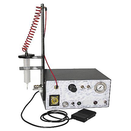 Dispensador de resina com dois sistemas de disparo: Cronometrado simples, para um trabalho de produção / repetitivo e Disparo livre.